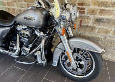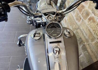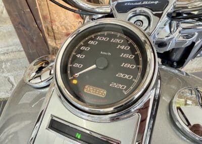 Zum Verkauf steht eine wunderschöne und sorgfältig gepflegte Harley-Davidson Road King in eleganter Farbe Billet Silver. Dieses klassische Tourenmotorrad vereint Komfort, Leistung und zeitlose Optik – perfekt für lange Strecken und entspanntes Cruisen.